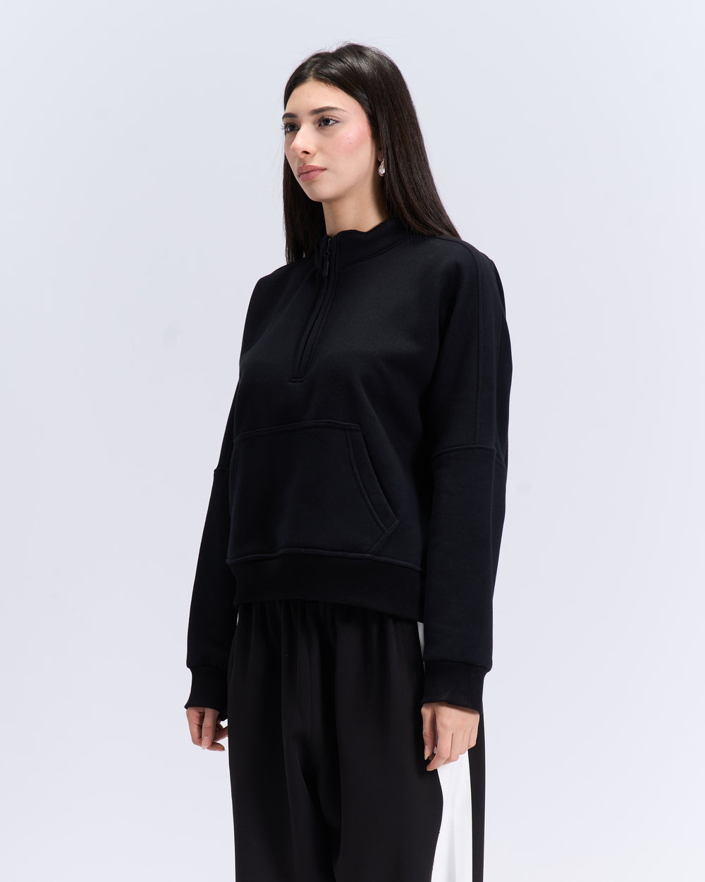 Black quarter zipup top